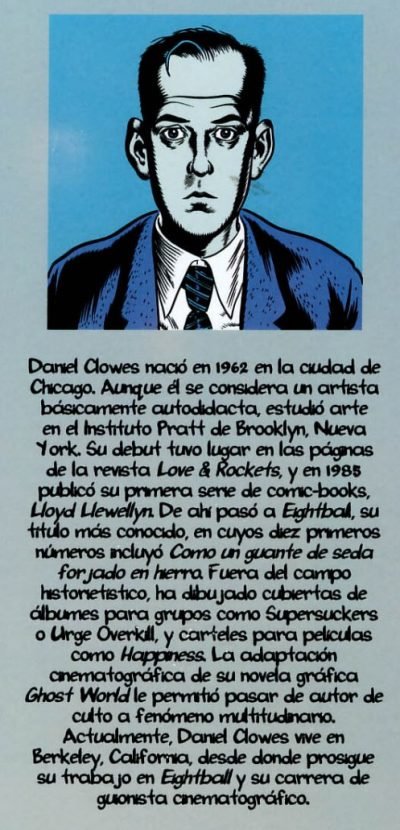 Título original: Ghost World Editorial: Fantagraphics Books Autor: Daniel Clowes Dibujante: Daniel Clowes Fecha de publicación: 1997 Género: Drama, comedia negra, novela gráfica Páginas: 83