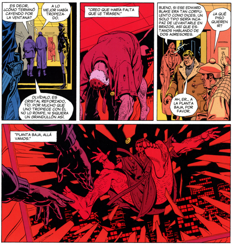 Además, el color de John Higgins juega un papel fundamental en el arte de Watchmen. Higgins emplea una paleta de colores única, que combina tonos brillantes y saturados con matices más oscuros y apagados. Esto crea un contraste visual sorprendente y contribuye a la atmósfera y el tono general de la obra.
